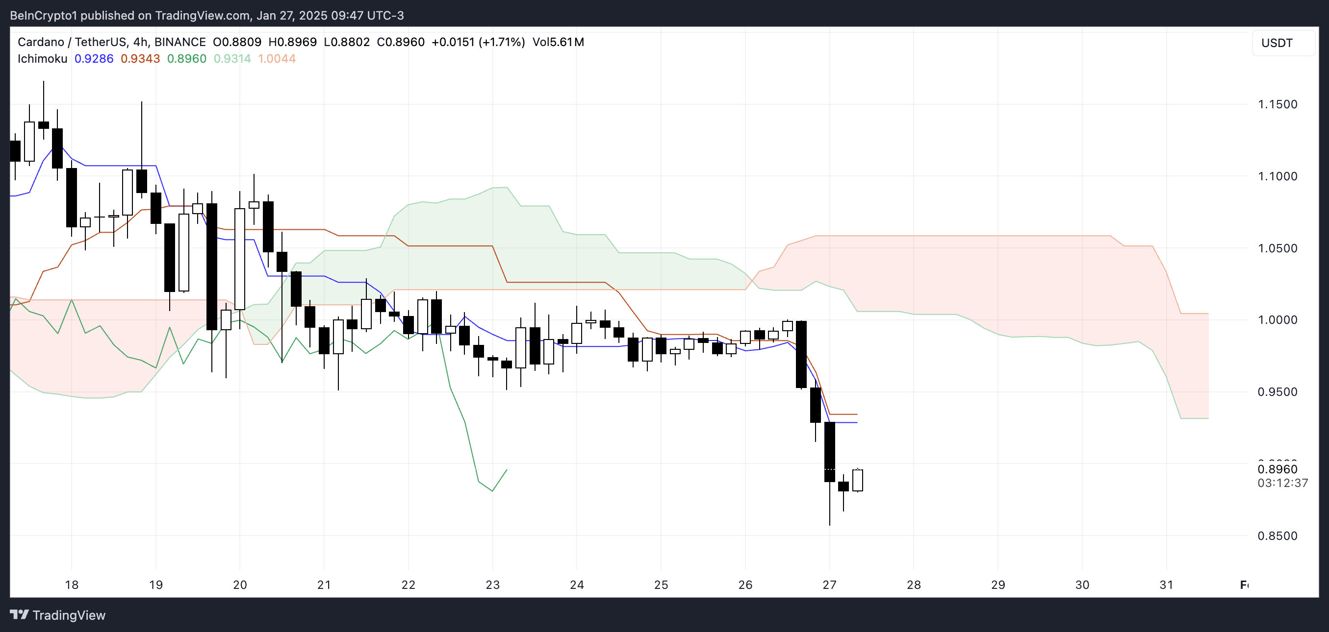 Cardano 一目雲圖顯示看跌形態