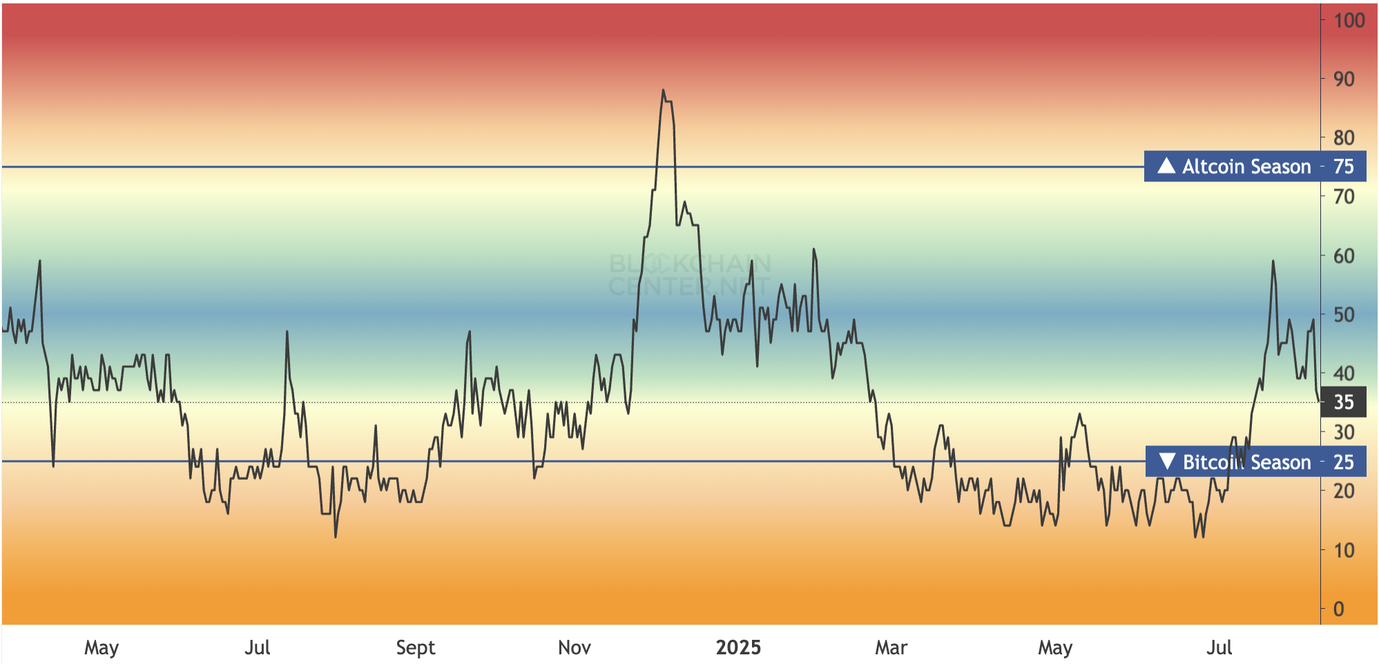 尽管交易活动如此活跃,山寨币季节指数仍仅为 35。然而,分析师们认为,山寨币季节可能即将到来。
