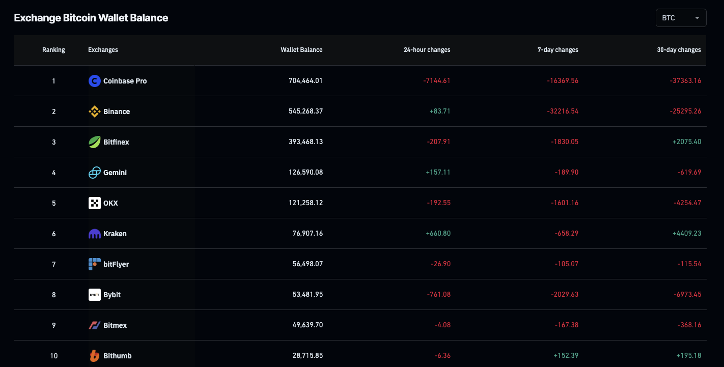 過去七天,Coinglass 的數據顯示約有 56,164.88 枚比特幣從 CEX 平台撤出。這表明投資者正在累積並減少賣壓,這通常被視為看漲信號。交易所供應量減少降低了賣壓,為價格增長鋪平了道路。