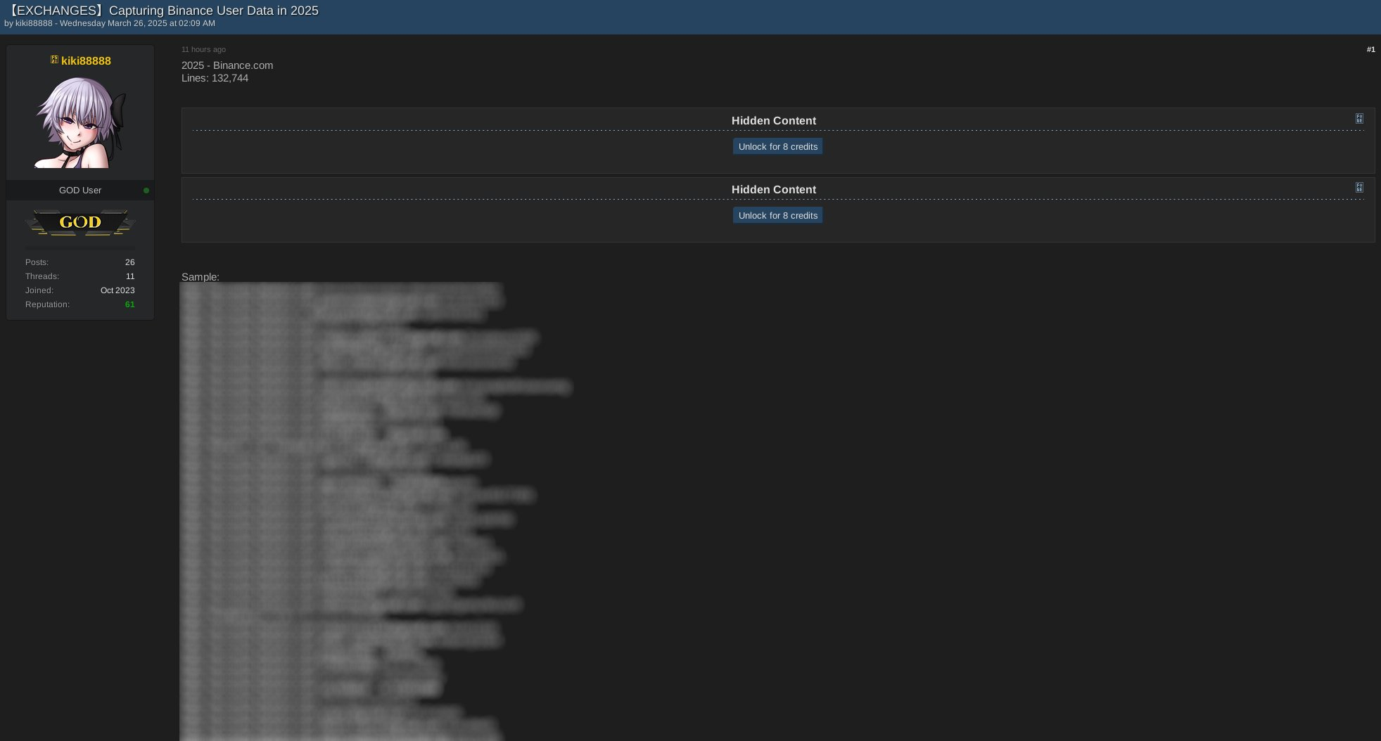 根據報告,另一名暗網用戶 kiki88888 據稱提供了一批幣安用戶數據出售。據說該數據庫包含超過 132,000 條記錄,包括交易所用戶的登錄信息。