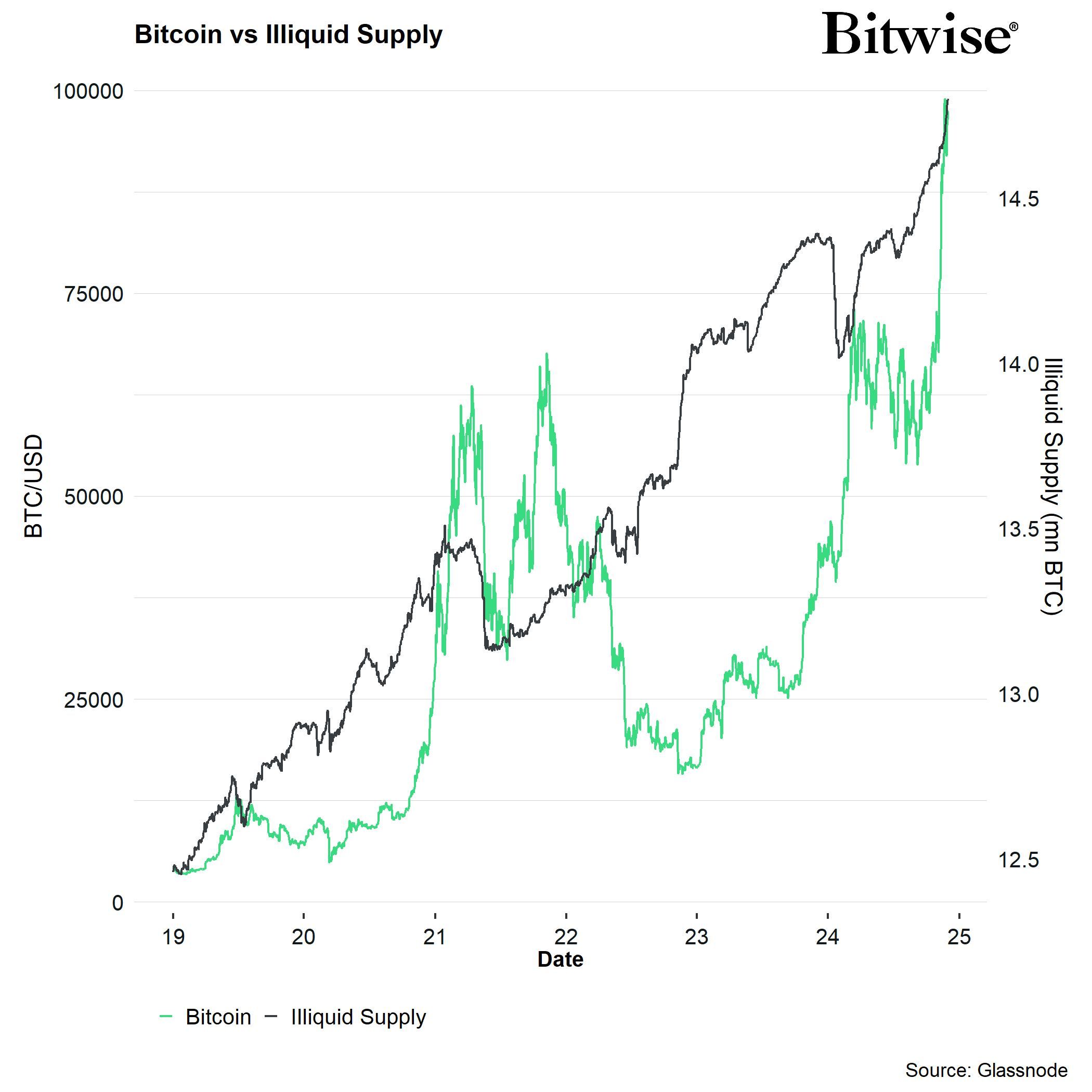 Bitwise 的研究主管 André Dragosch 持有類似的看法。他預計比特幣將因美國流動性緊縮而承受壓力。然而,他強調了一個內部比特幣因素,可能抵消這種流動性緊縮:比特幣的不流動供應量正在增長。