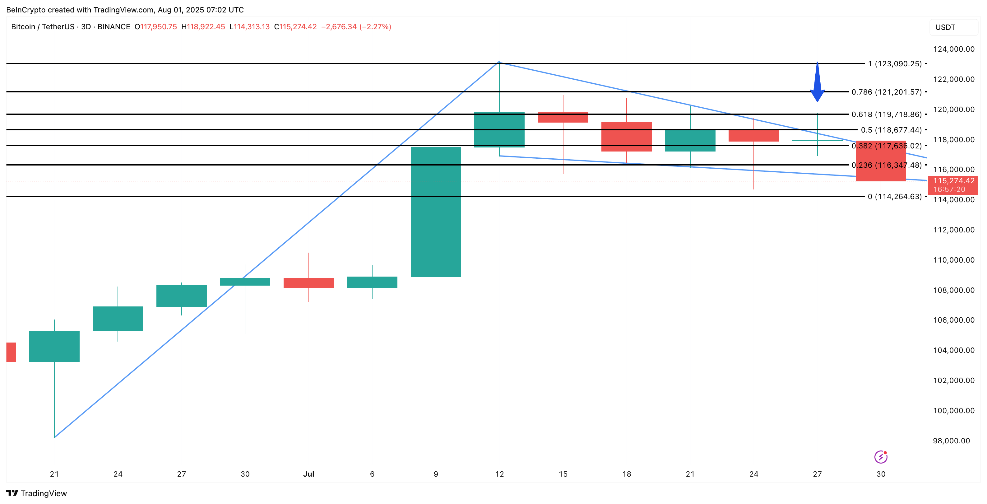 比特币价格在过去 24 小时内回调约 2.4%,目前维持在 115,000 美元以上。尽管交易者保持谨慎,但一个看涨的形态可能决定比特币是大幅冲向 150,000 美元,还是面临失去上升动能的风险。