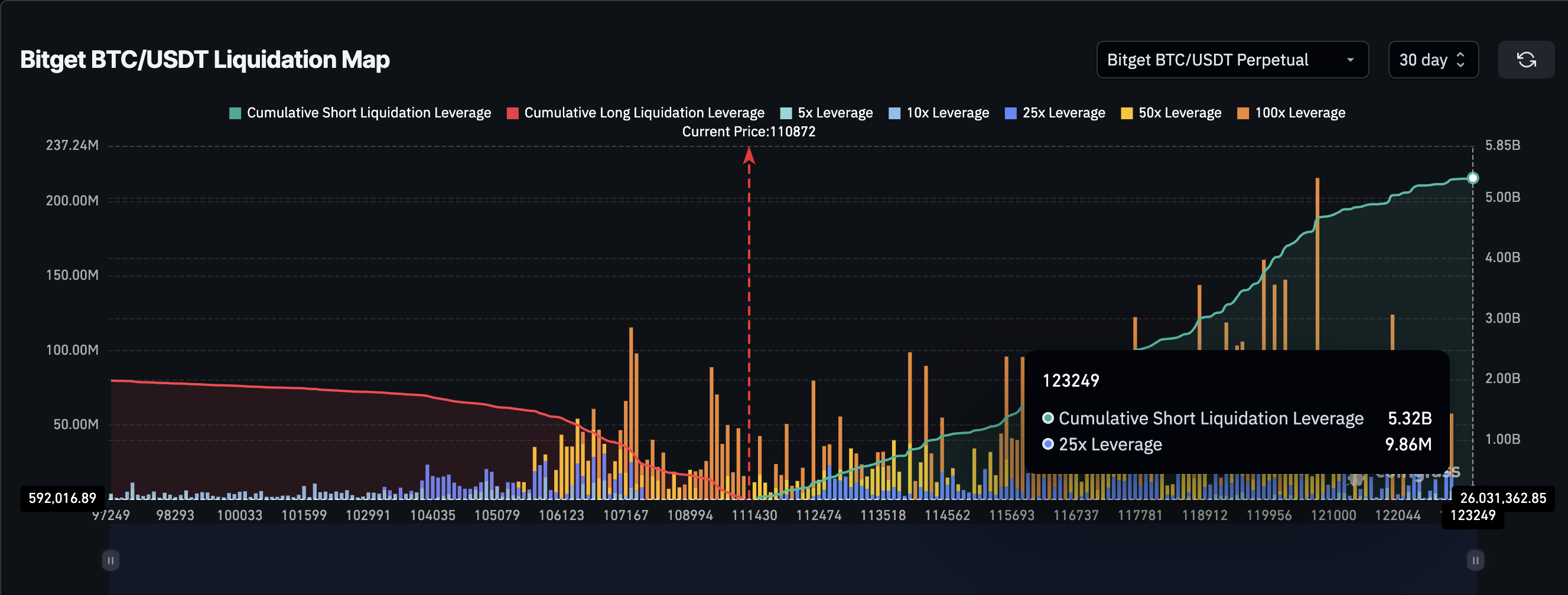 另一个短期因素是清算数据。在 30 天的时间框架内,比特币有 52.4 亿美元的空头头寸,而多头仅为 18.3 亿美元。这种不平衡增加了如果价格上涨,空头挤压的可能性。