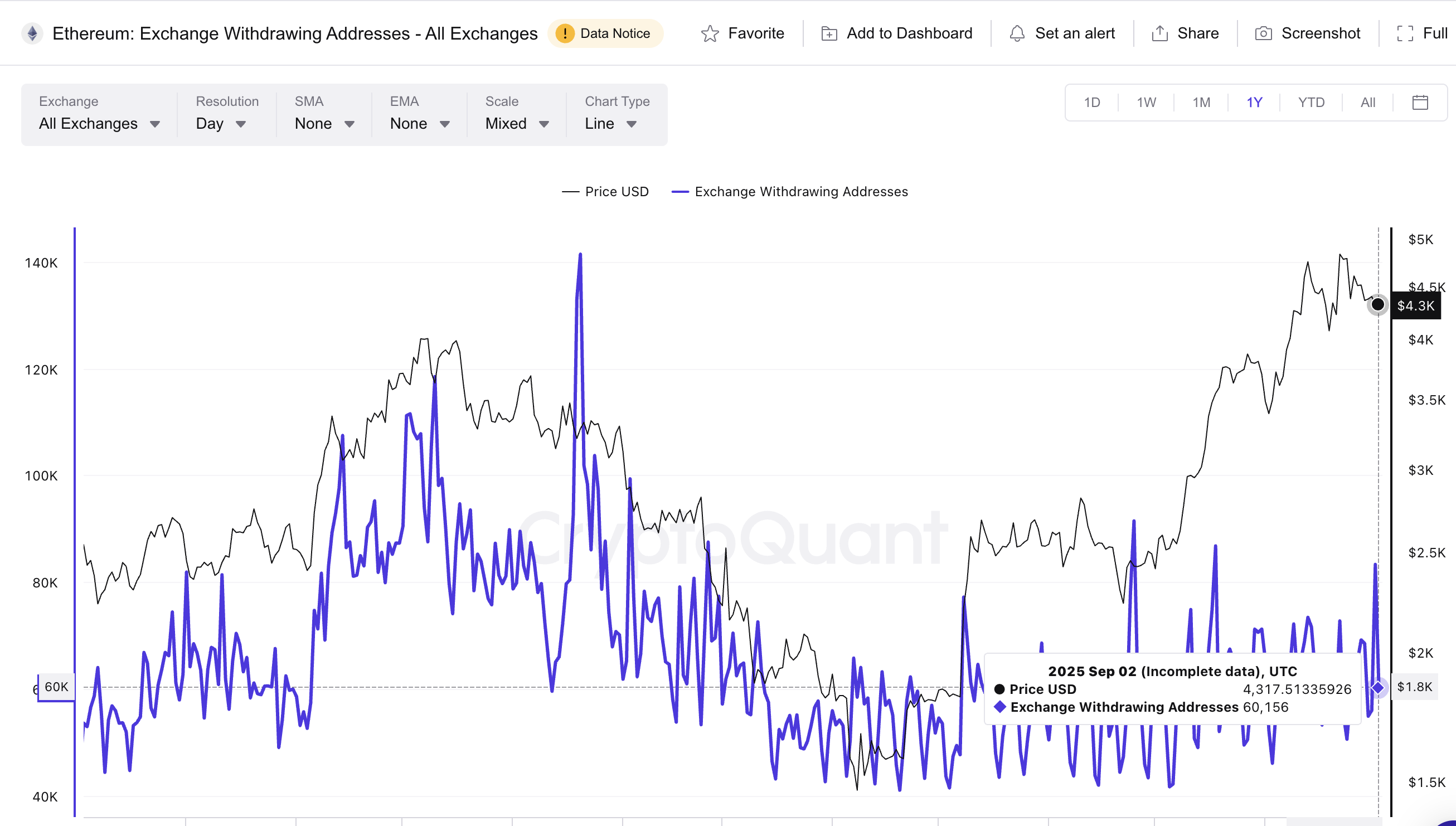 以太坊的提币地址从 2024 年的 53,333 个增加到今年的超过 60,000 个,进一步支持了更强的自我托管和积累的看涨论点。
