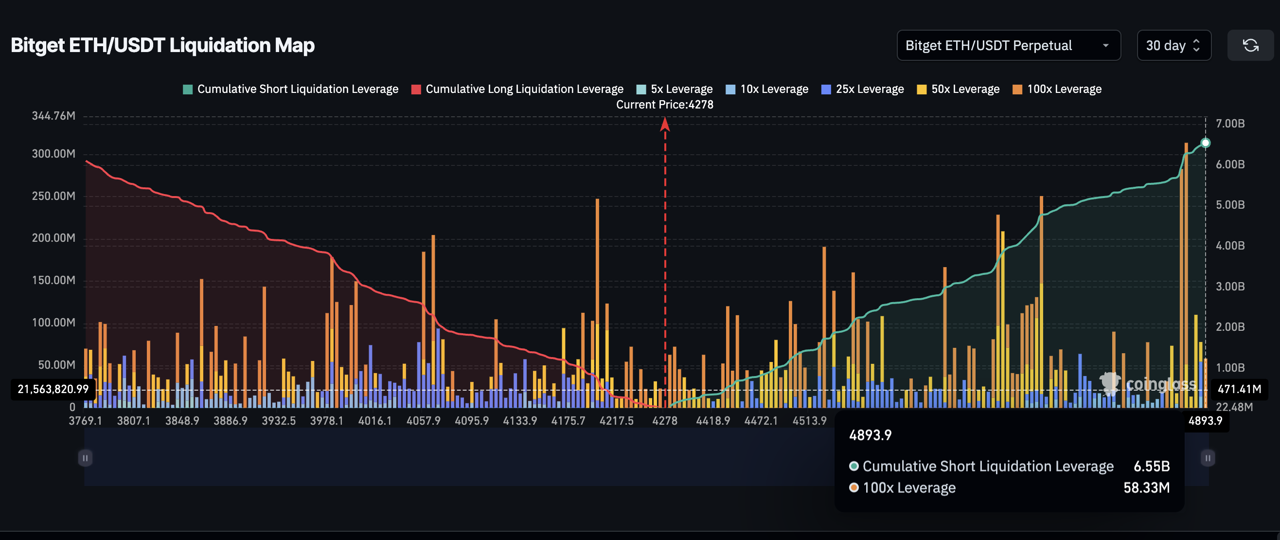 以太坊则显得更为平衡,空头为 65.5 亿美元,多头为 61 亿美元。