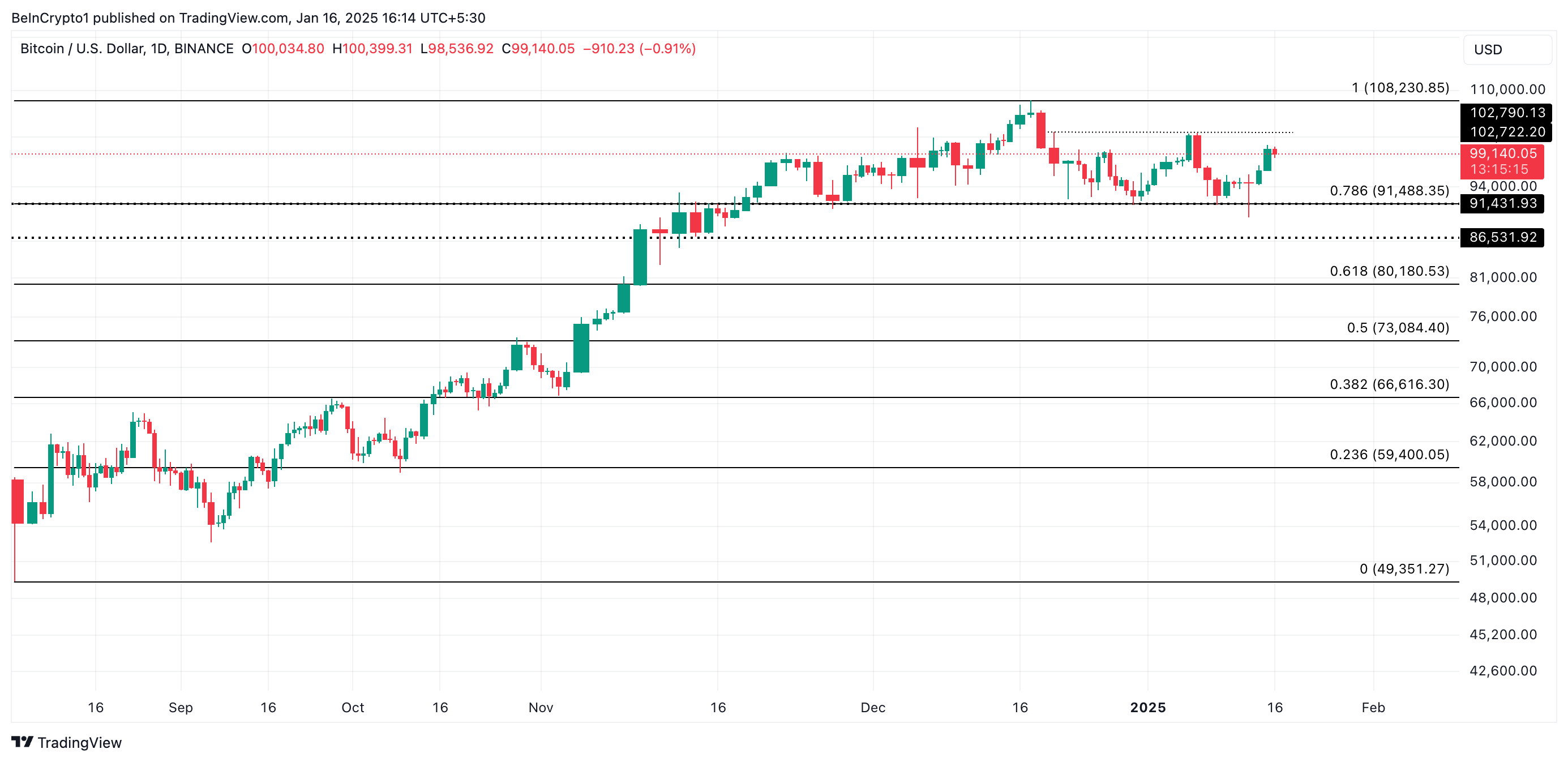 成功突破 102,722 美元的阻力位將推動比特幣價格接近其歷史高點 108,230 美元。