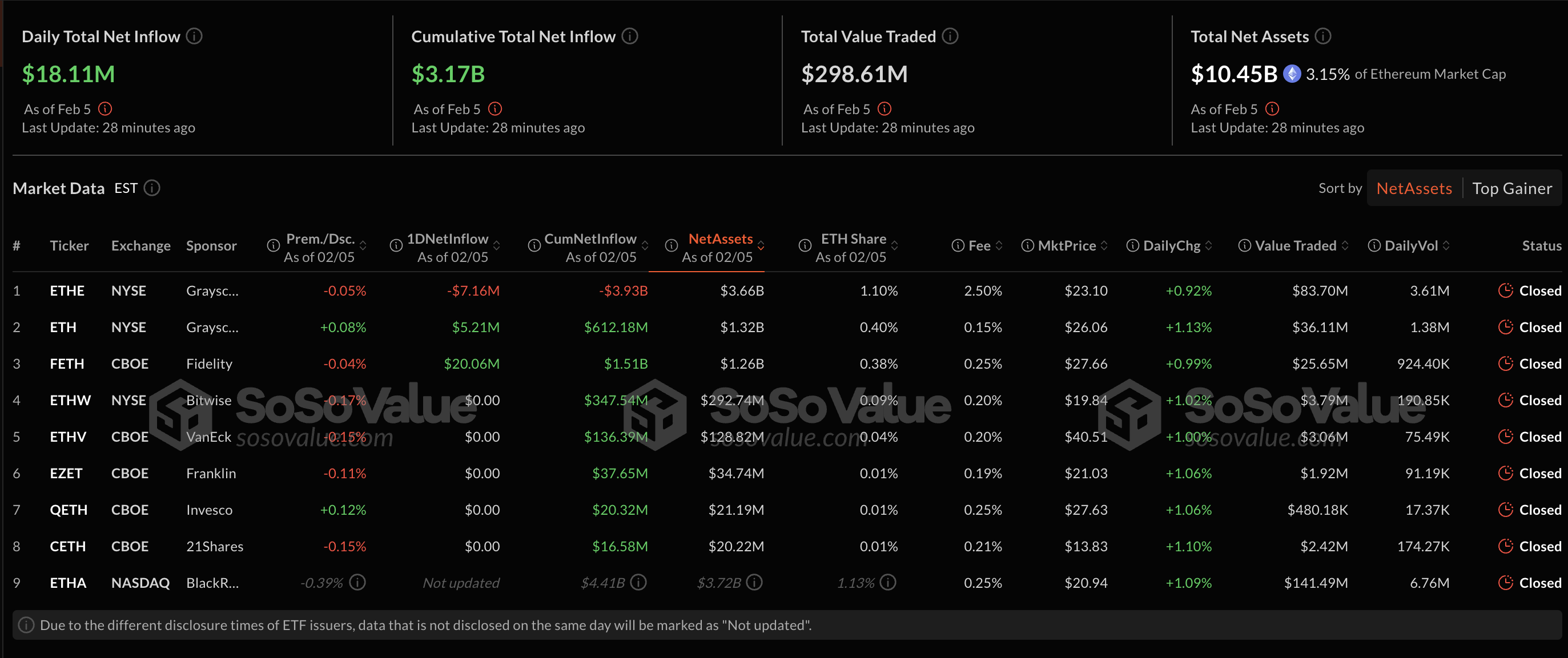 這是其早期里程碑之後的結果。週一,ETF 的總交易量創下 15 億美元的歷史新高。根據最新數據,2 月 5 日,以太坊 ETF 的每日淨流入為 1811 萬美元。因此,總淨流入現已達到 31.7 億美元。