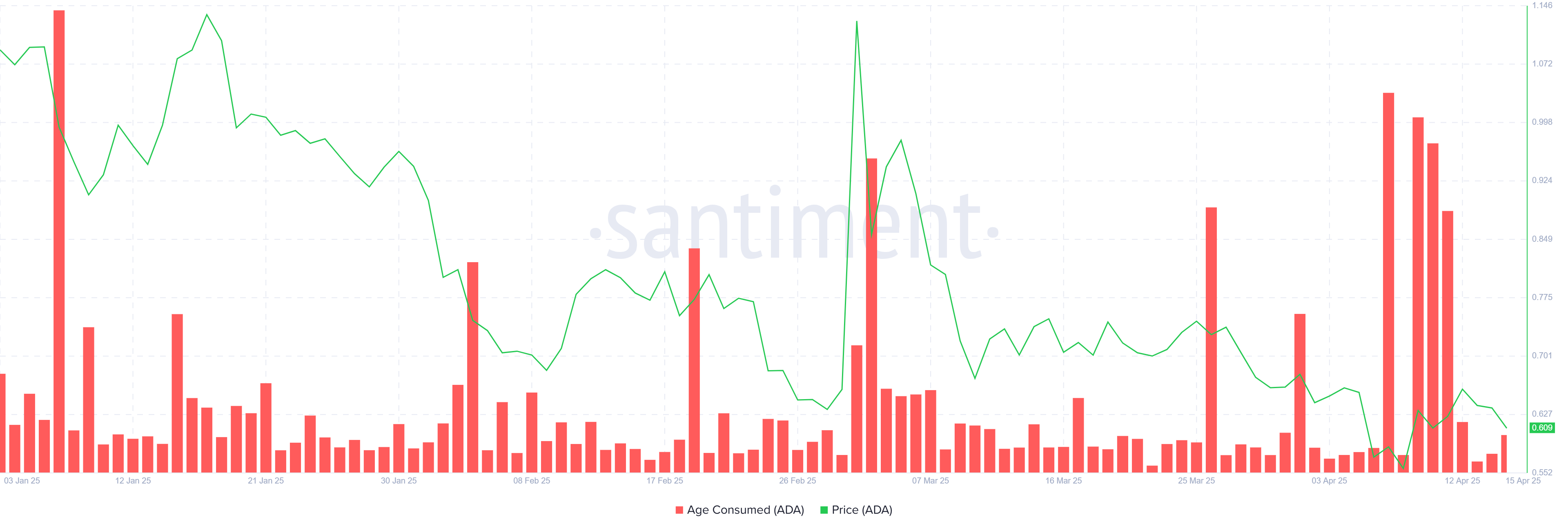 「消耗年齡」指標在過去一週激增,顯示長期持有者的拋售活動顯著增加。隨著 Cardano 價格在本週稍早略有上升,LTHs 可能抓住機會套現,利用短暫的收益。這一拋售活動加劇了代幣的下行壓力,導致價格急劇下跌。