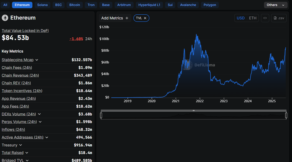 2020 年标志着以太坊的又一次革命——去中心化金融(DeFi)。Uniswap、Aave、Compound 和 MakerDAO 等协议提供了无需信任的借贷、交易和收益农场服务。在“DeFi 夏季”期间,总锁定价值飙升至超过 110 亿美元。