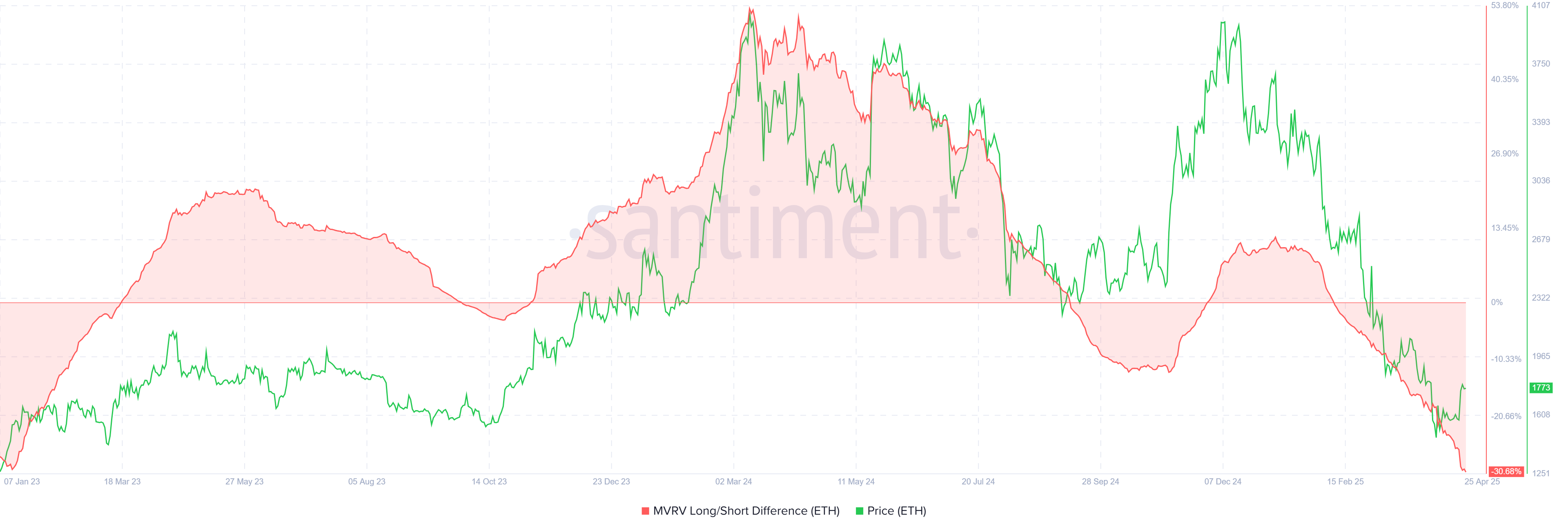 該指標突顯了長期和短期持有者之間的脫節,後者的利潤達到兩年來的高點。上次出現這種情況是在 2023 年 1 月,當時以太坊經歷了重大拋售,導致價格下跌。