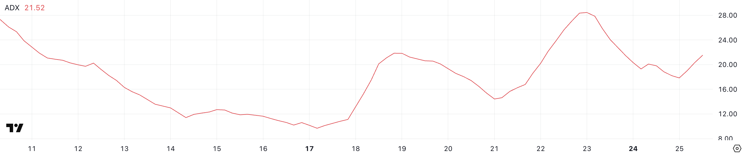 如果 ADX 繼續上升,可能表明買入動能正在鞏固。相反,如果未能突破 25 並再次下降,上升趨勢可能會失去動能。