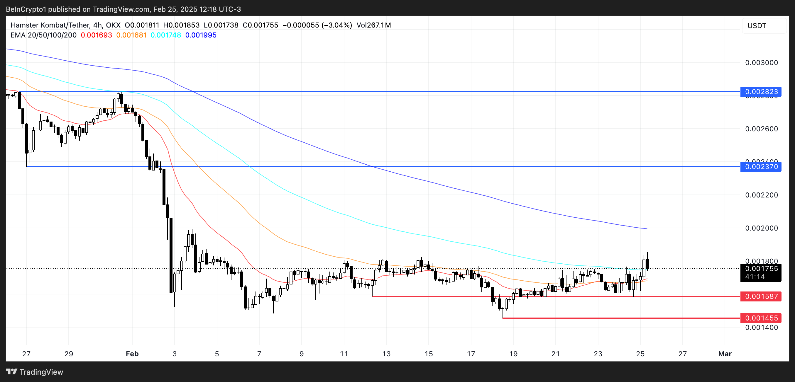 相反地,如果動能減弱且上升趨勢失去力量,HMSTR 可能面臨更大的賣壓。在這種情況下,可能測試 0.00158 美元的支撐位。如果這一支撐位失守,價格可能下跌至 0.00145 美元。