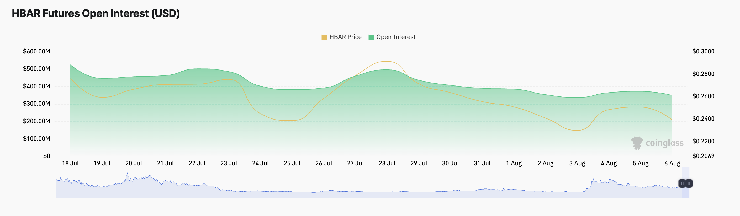 根据 Coinglass 的数据,HBAR 在期货市场的未平仓合约数量急剧下降,表明衍生品交易者正在撤回看涨押注。截至发稿时,未平仓合约总额为 3.4935 亿美元,过去 7 天内下降了 11%。
