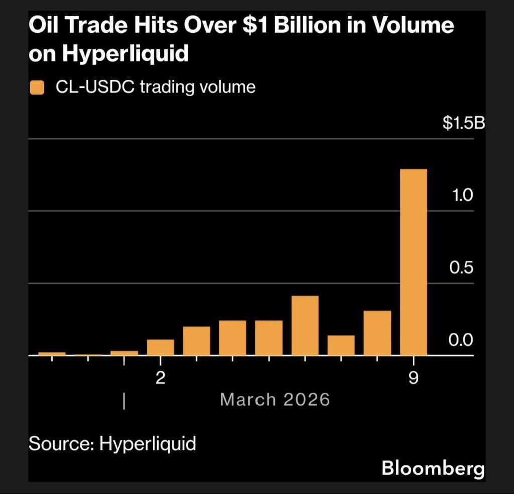 据 Bloomberg 报道,与 WTI 原油挂钩的永续合约单日成交量突破 12 亿美元,一举超越以太坊,成为平台交易量第二高的市场。