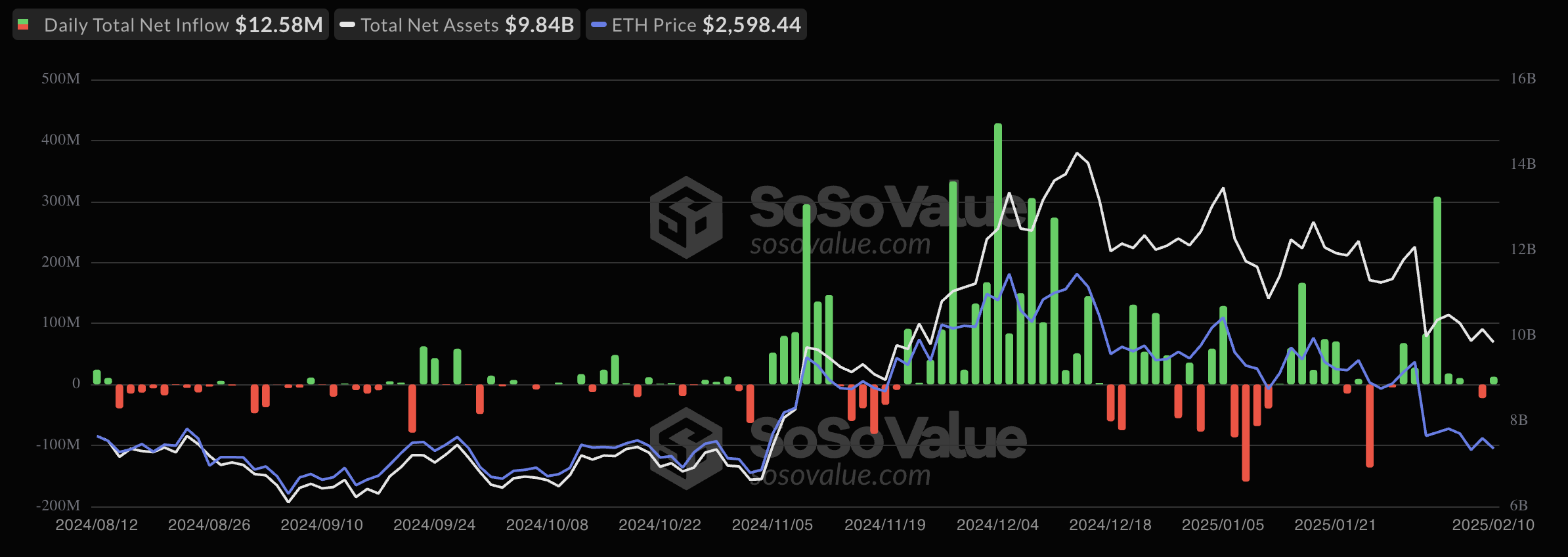 即將於 3 月進行的Pectra 升級和特朗普支持的 World Liberty Financial 最近的購買推動了對這個最大山寨幣的機構興趣。因此,只要 ETH 低於 3,000 美元,美國現貨以太坊 ETF 市場可能會繼續看到淨流入。