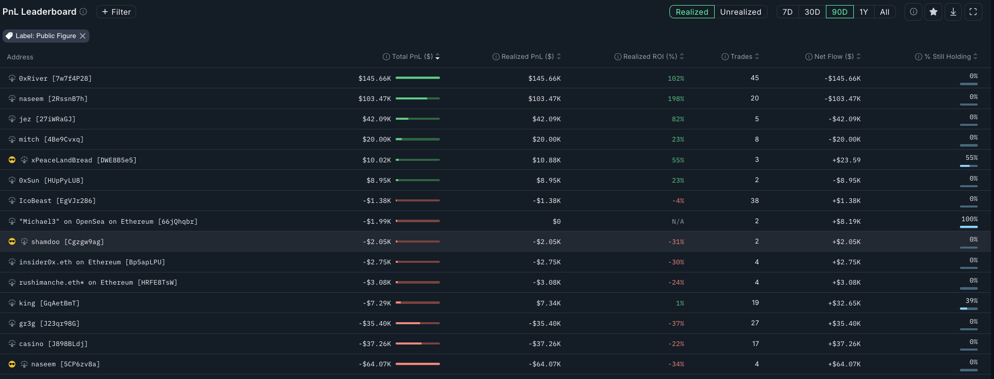 - 盈利:前 500 个钱包实现了 +5,040 万美元的利润。