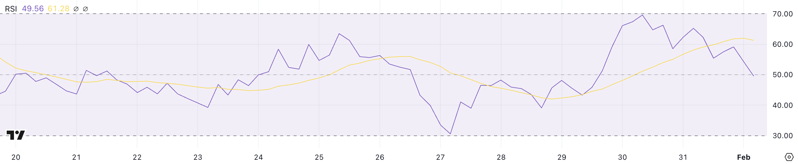 如果穩定或回升至 50 以上,可能表明買盤興趣重燃,價格有望回升。