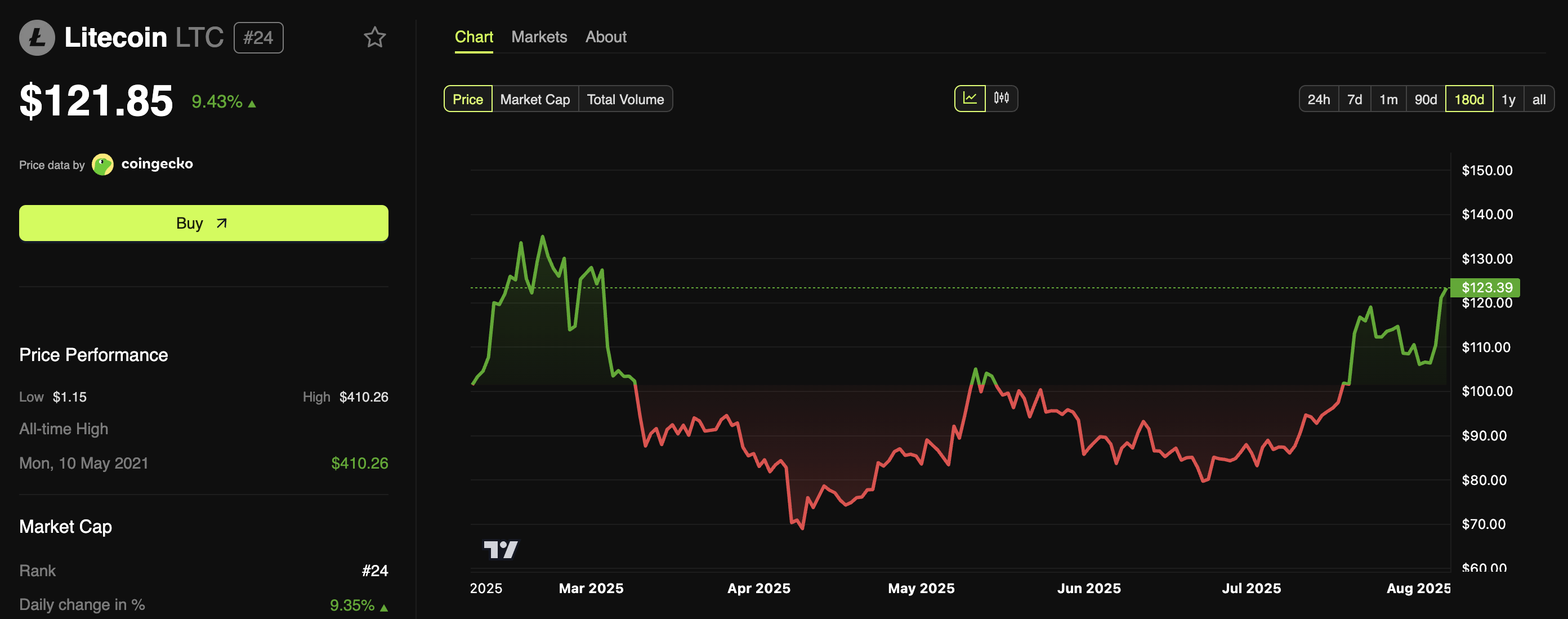 另一位分析师指出,短期内的下一个目标是 150 美元。他还提到,莱特币(LTC)相比许多其他山寨币表现出更强的势头,重返历史高点可能指日可待。