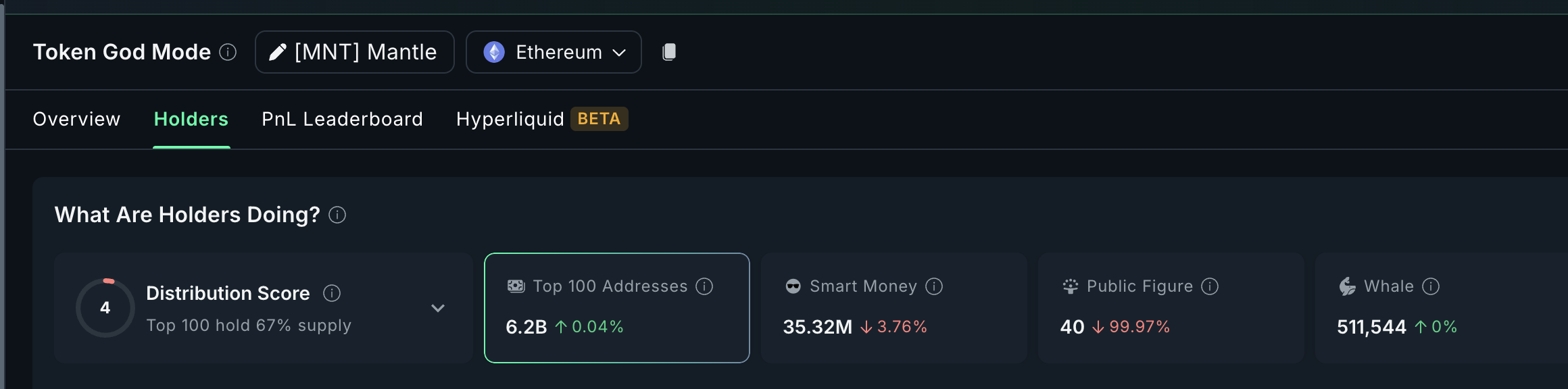 与此形成对比的是,前 100 大地址增持了 248 万 MNT。这一举动表明,尽管短期内有智能资金获利了结,但大户仍然保持信心。