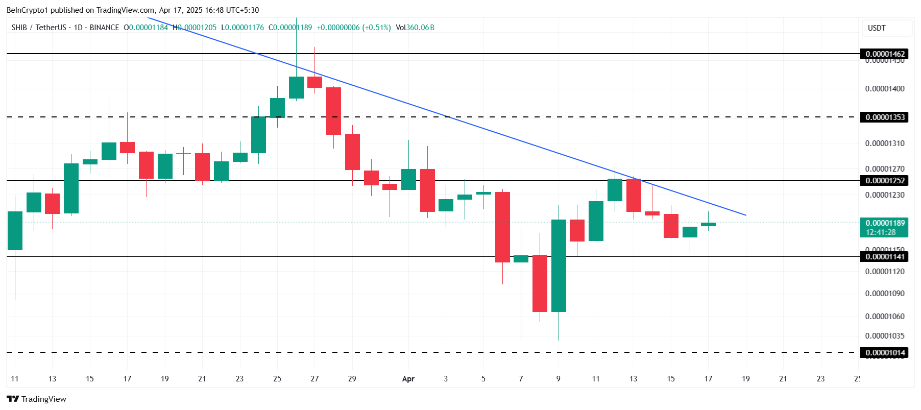柴犬幣的價格目前為 0.00001189 美元,自年初以來持續下跌。儘管這枚迷因幣顯示出潛在的復甦跡象,但燃燒率的下降限制了上升動能。若此趨勢持續,可能會阻礙 SHIB 獲得實質性收益。