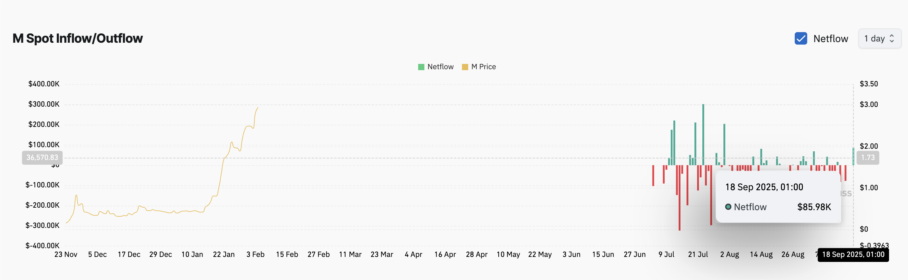 这种行为表明,M 币的上涨动能接近耗尽,短期内可能出现疲软。