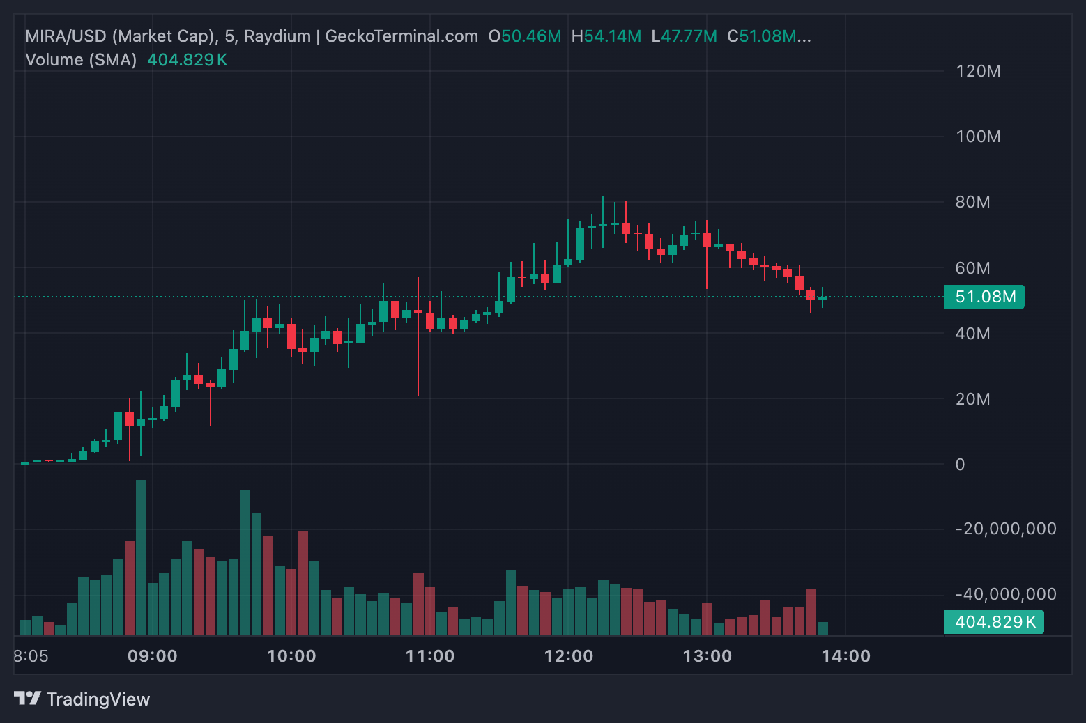 隨著這個故事在社交媒體上傳播,GeckoTerminal 的數據顯示,MIRA 的市值在報導時超過 8 億美元,交易量超過 10 億美元。MIRA 的價格越高,Siqi 就能為腦瘤研究籌集更多資金。這不僅僅是因為 FOMO,也因為為社會貢獻一個有意義的事業的精神。