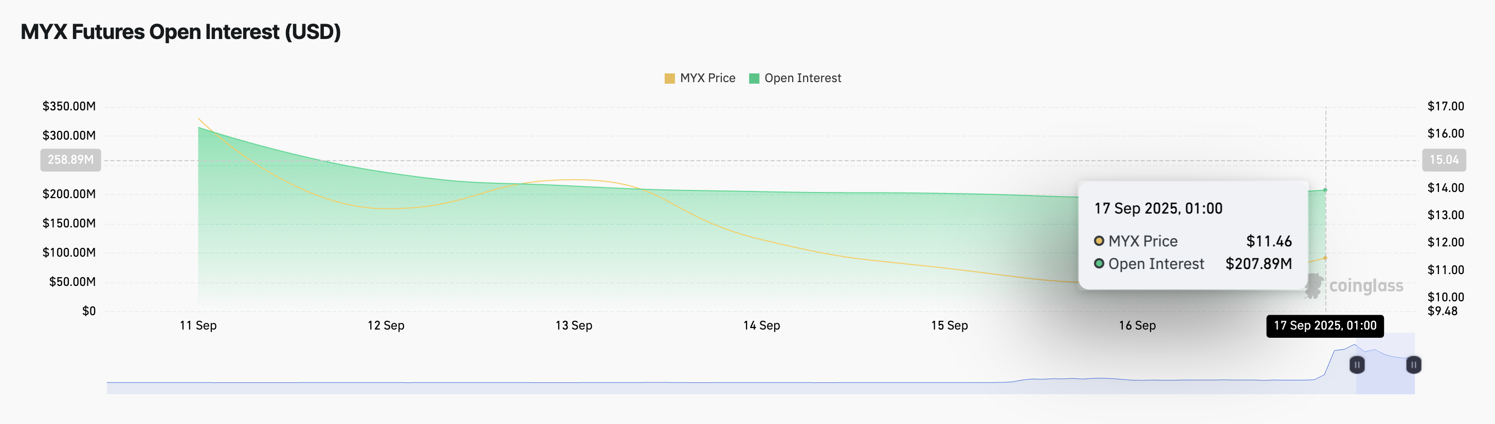 此外,代币期货未平仓合约的增加反映出过去一天内 MYX 活动的增加,进一步支持了上述看涨前景。根据 Coinglass 的数据,目前未平仓合约为 2.08 亿美元,较前一天增长 6%。