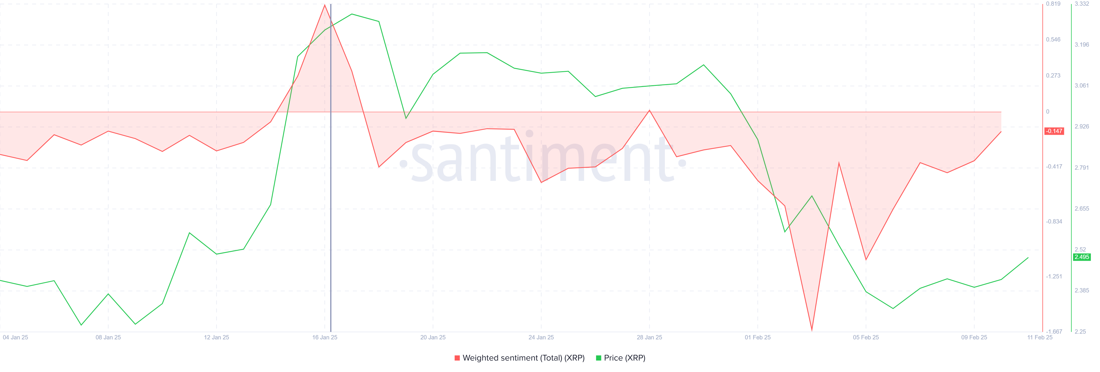 圍繞 XRP 的加權情緒主要是悲觀的。最近的價格走勢,包括未能創下新高,讓投資者感到沮喪。該山寨幣在過去一週的急劇下跌進一步加深了懷疑,許多人選擇採取觀望態度。
