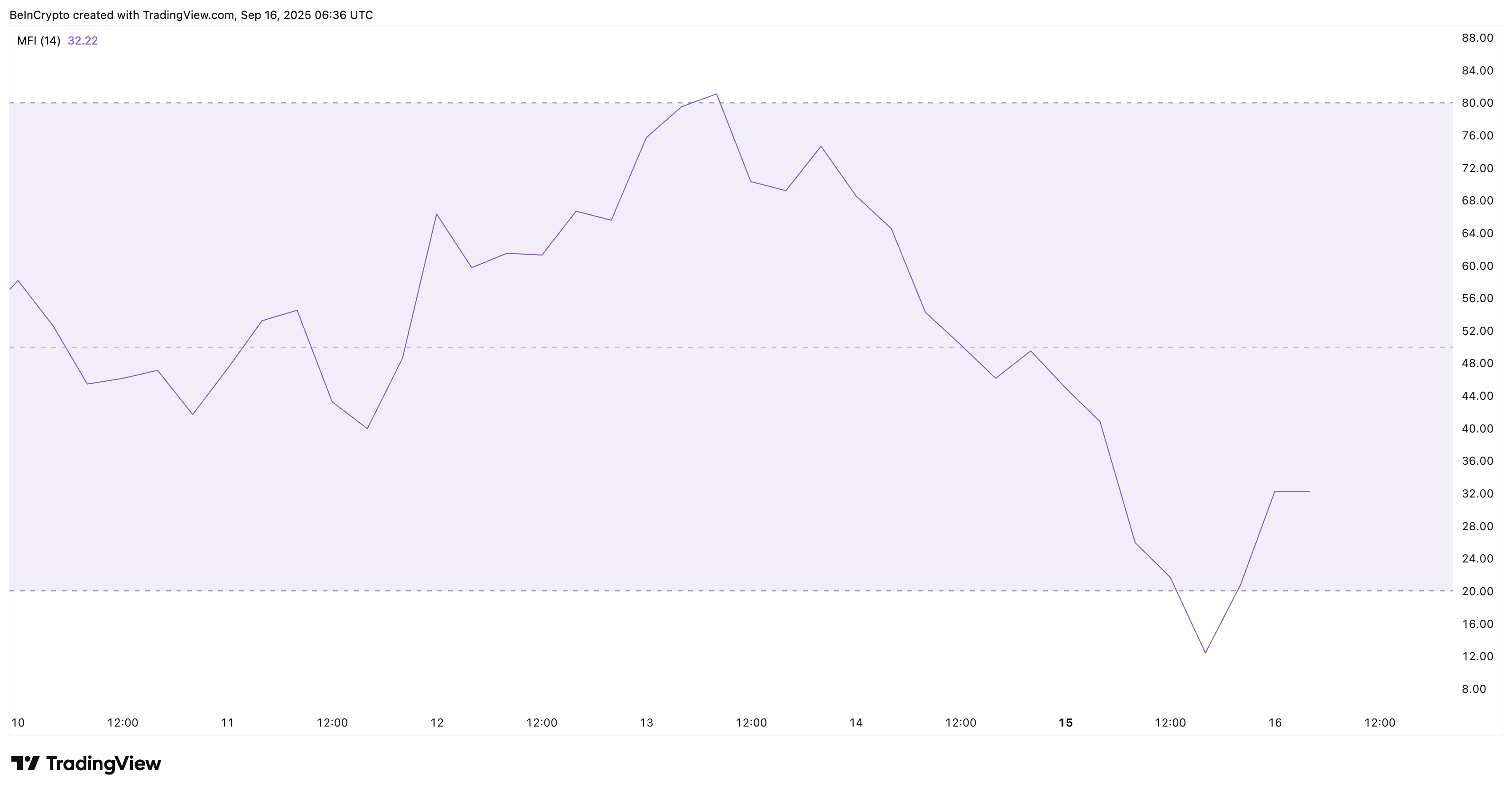 第一个线索来自资金流量指数(MFI),该指标通过追踪价格和交易量来显示买卖压力。MFI 随着这次反弹急剧上升,表明有积极的抄底行为。表面上看,这似乎是健康的,意味着交易者正在介入。