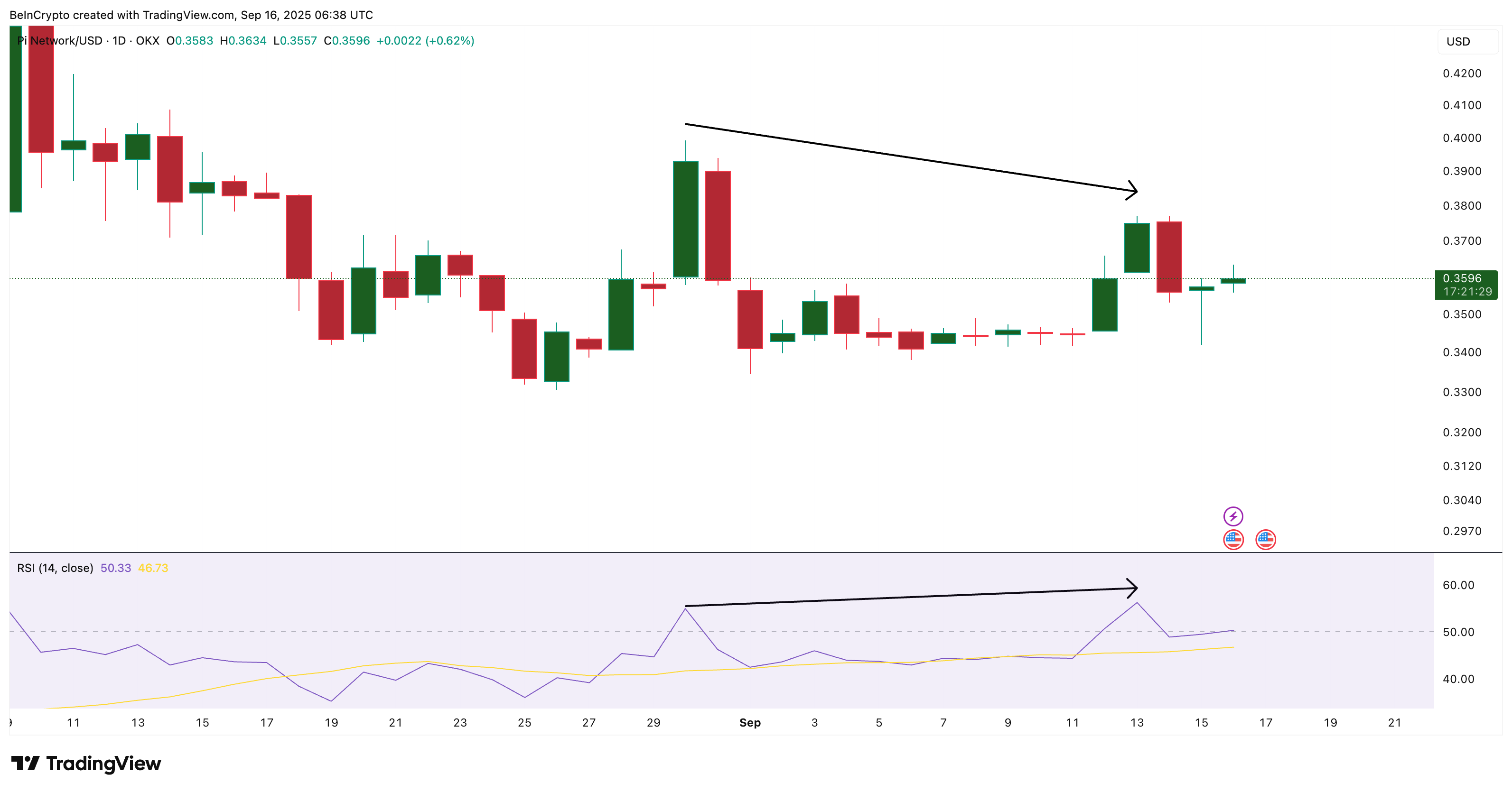 Pi 币(PI)在经历了一段艰难时期后,似乎开始有所起色。截至撰写本文时,Pi 币价格约为 0.36 美元,过去 24 小时上涨近 3%,过去一周上涨约 4%。这一走势可能让希望该代币已走出低谷的交易者感到鼓舞。