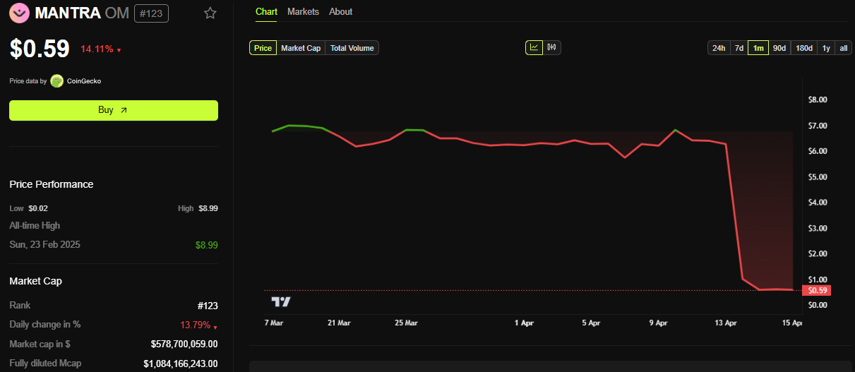 這一警告是在 OM 價格在不到一小時內暴跌超過 90%,市值蒸發超過 55 億美元後發出的。