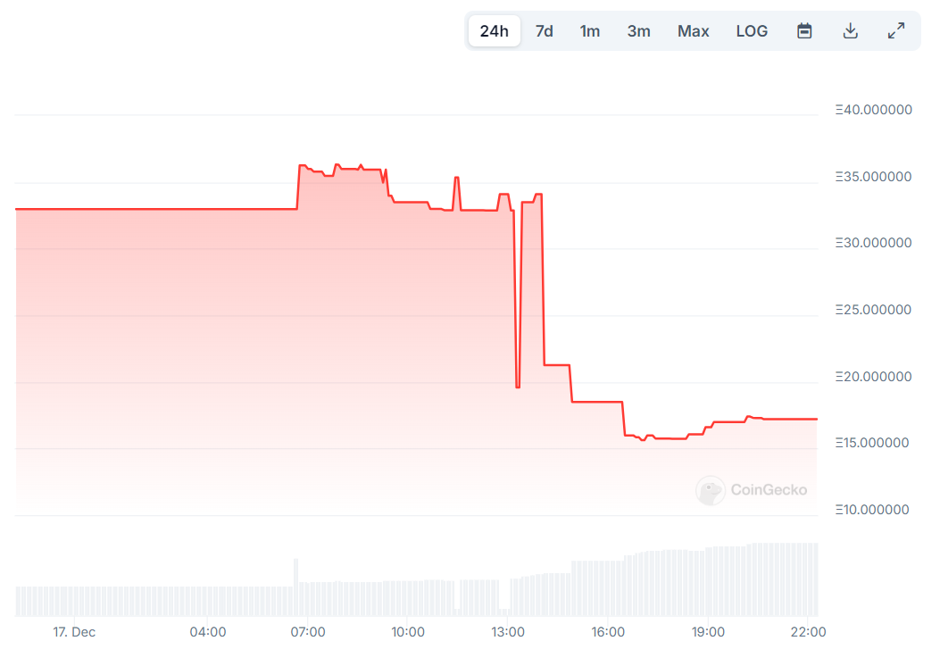 儘管下跌,PENGU 仍保持超過18億美元的市值。相比之下,Magic Eden 的 ME 代幣的市值要小得多,約為 400,000 美元。