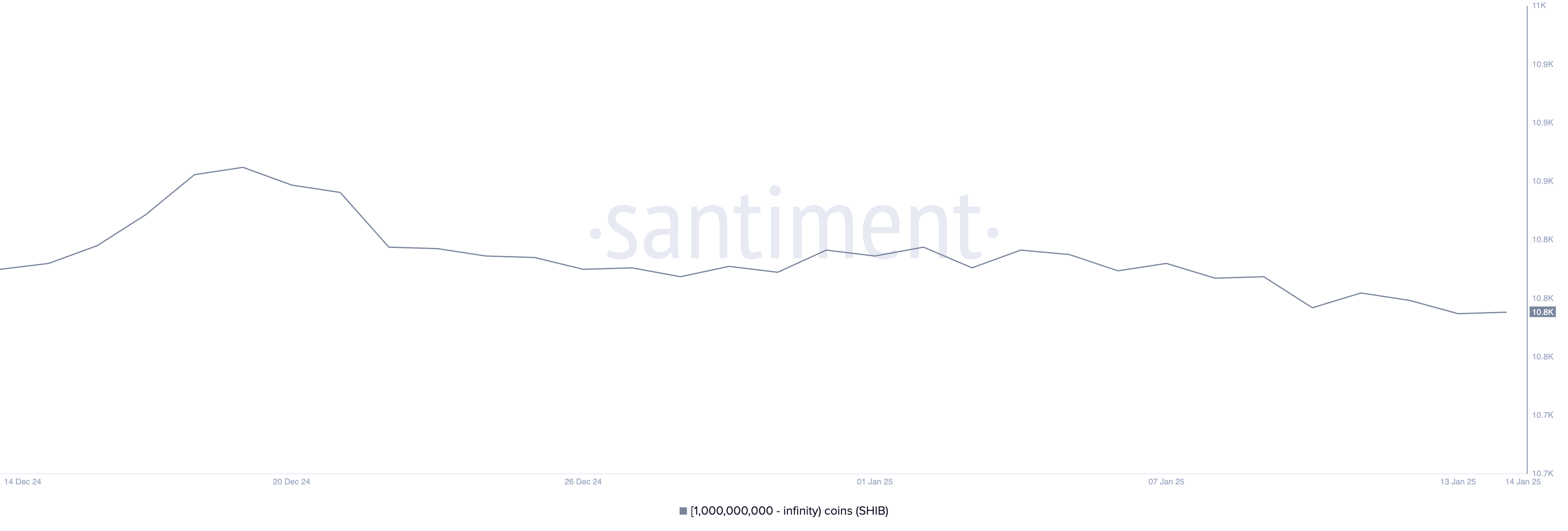 持有至少 10 億 SHIB 的巨鯨數量從 12 月 19 日的 10,930 的月高點下降到今天的 10,832,兩天前曾達到 10,831 的低點。