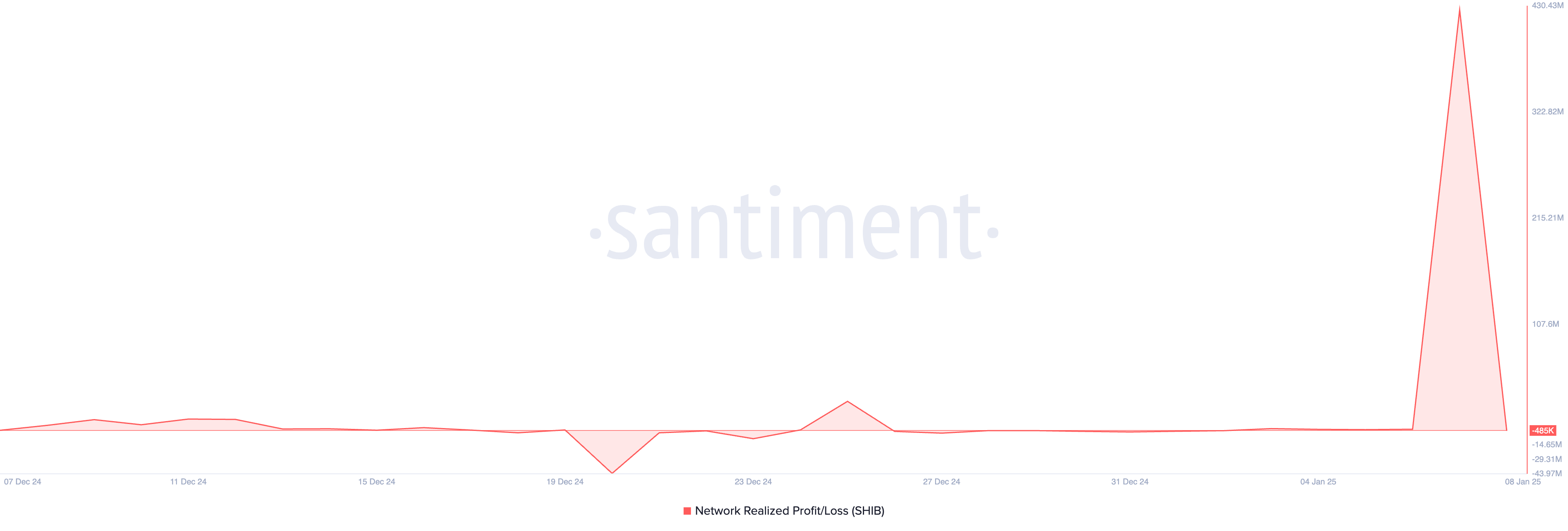 1 月 7 日,SHIB 的網絡實現盈虧(NPL)總計 4.26 億美元,創下自 2022 年 2 月以來的單日最高值。