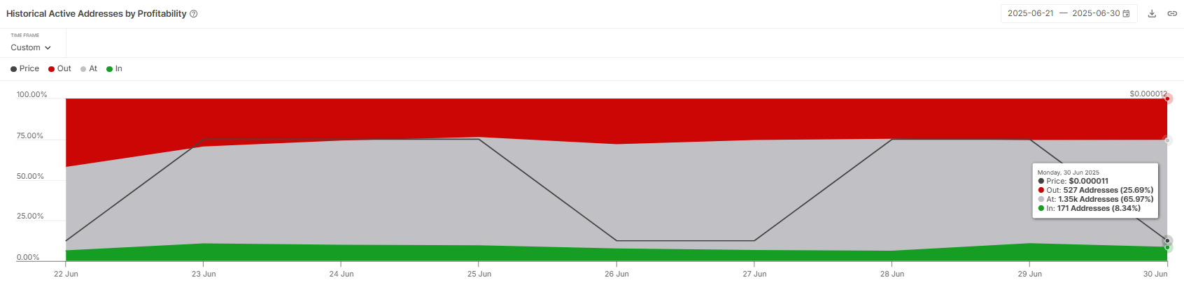 目前,盈利的活跃地址占 Shiba Inu 总地址的 25% 以上。这些获得收益的持有者更有可能套现,从而对价格施加更大的卖压。如果这种盈利地址的集中现象持续主导市场,可能会对价格产生沉重的影响。