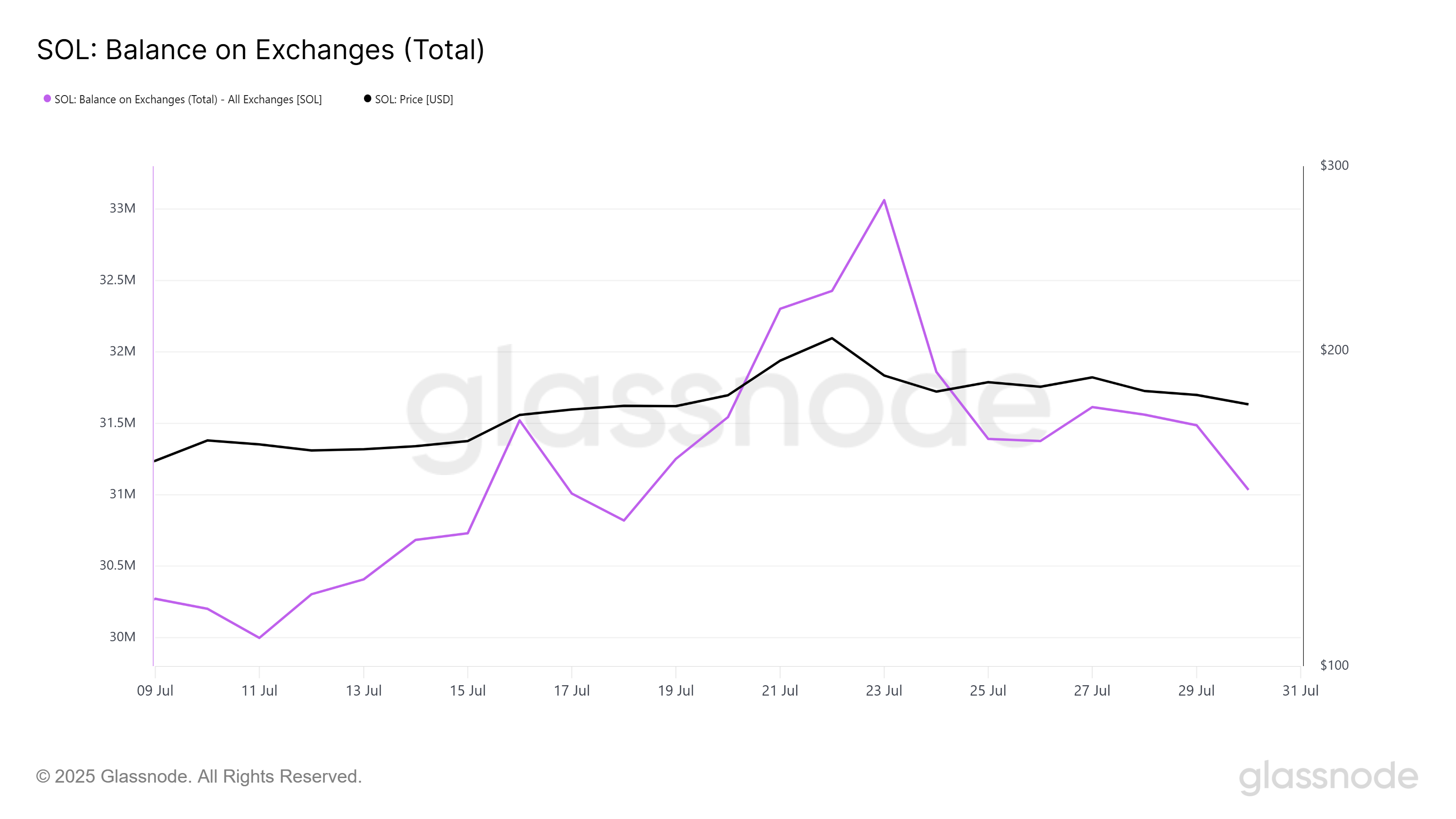 Solana 在交易所的余额在过去一周内减少了 203 万 SOL,显示出增加的积累。这表明投资者购买了价值 3.67 亿美元的 SOL,可能是预期未来的收益。随着 Solana 价格的下跌,许多投资者开始积累代币。