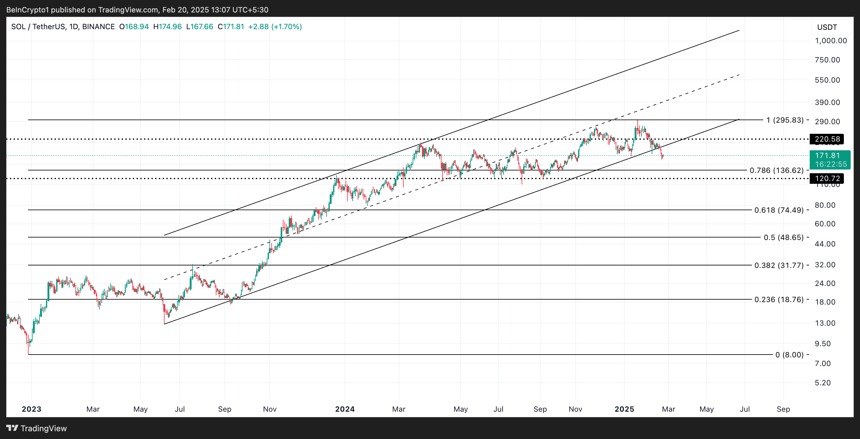 Solana 的價格自 1 月 18 日達到 295.83 美元的歷史高點後急劇下跌。截至發稿時,SOL 的交易價格為 171.81 美元,自那時以來下跌了 41%。