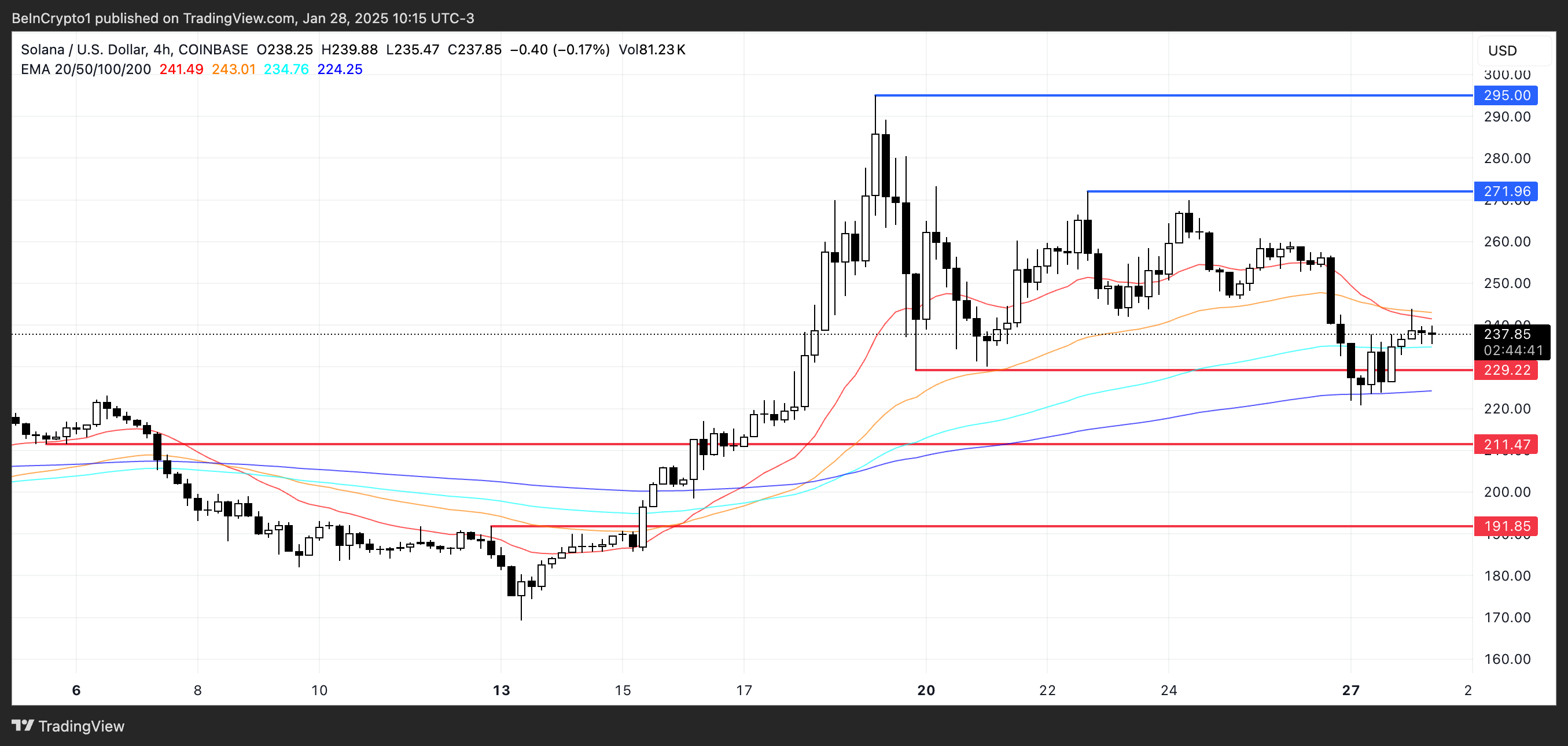 在過去幾天,Solana 價格成功維持在 229 美元區域。這一水平為 SOL 提供了關鍵基礎,暫時避免進一步下跌。