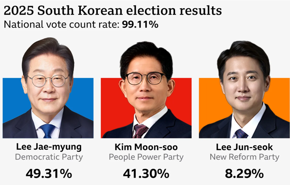 韩国总统大选落下帷幕,中左翼民主党候选人 李在明(Lee Jae-myung) 以 49.31% 的得票率击败保守派对手金文洙(Kim Moon-soo),成功当选新一任总统。此举引发韩国加密行业一片乐观情绪,市场普遍期待新政府将推动比特币 ETF 与韩元稳定币的发展。