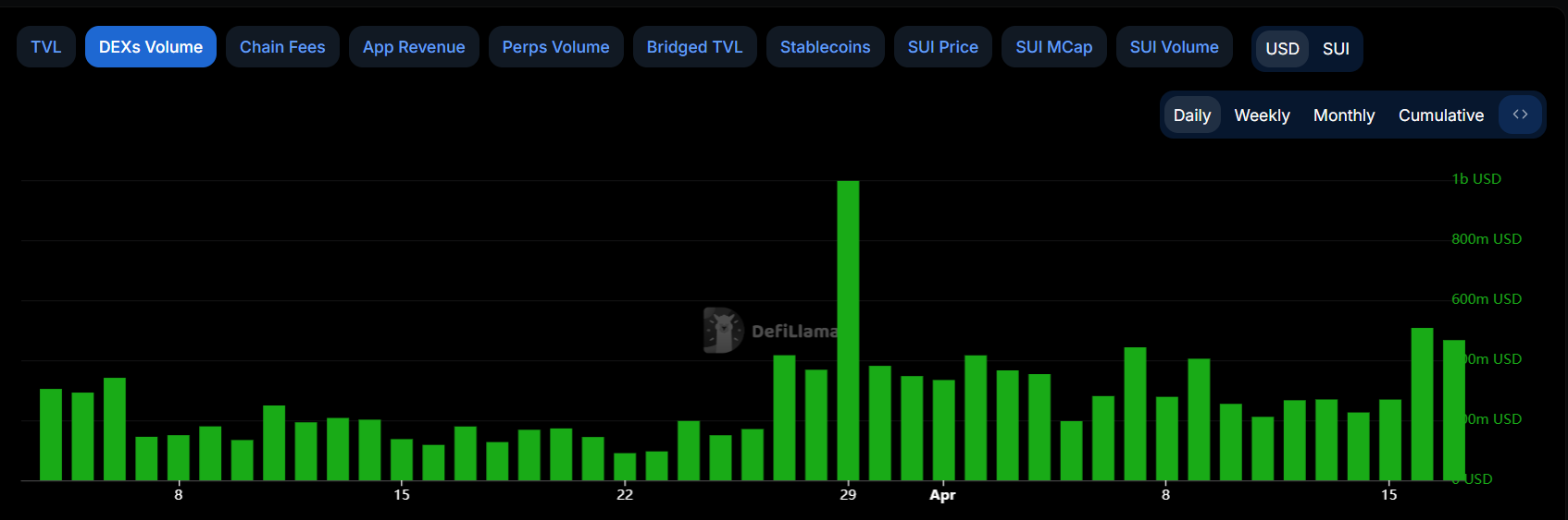 然而,Sui 迷因幣正獲得意外的關注,DEX 交易量顯著上升。