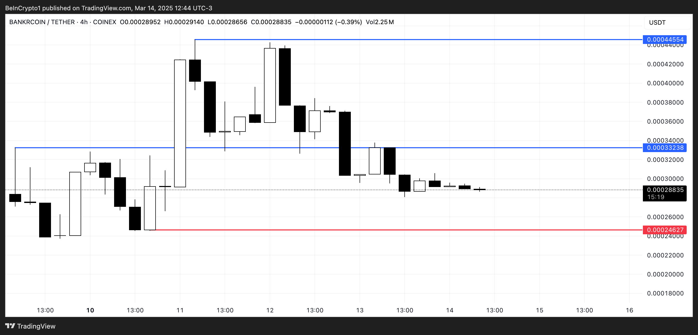 如果 BNKR 維持其動能,可能會重新測試 0.00033 美元的水平,突破後可能升至 0.00044 美元。