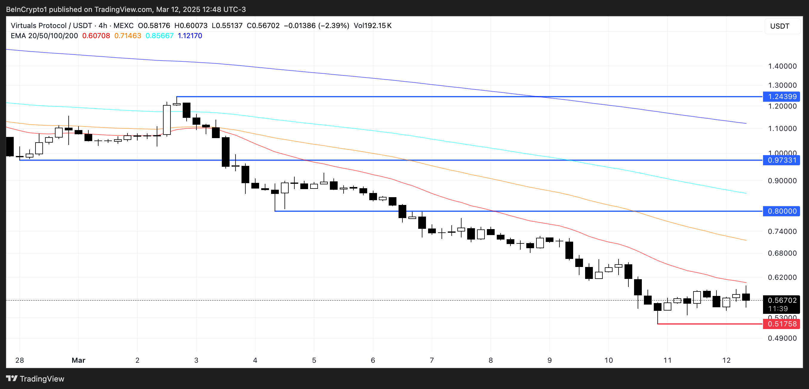 如果買盤壓力持續增加,VIRTUAL 可能會穩定並嘗試反彈。