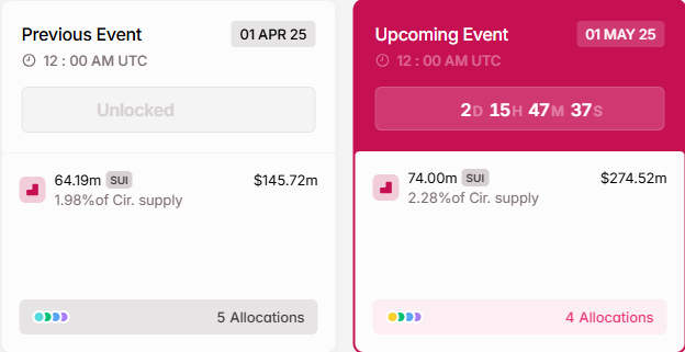 2.74 億 美元 SUI 解鎖