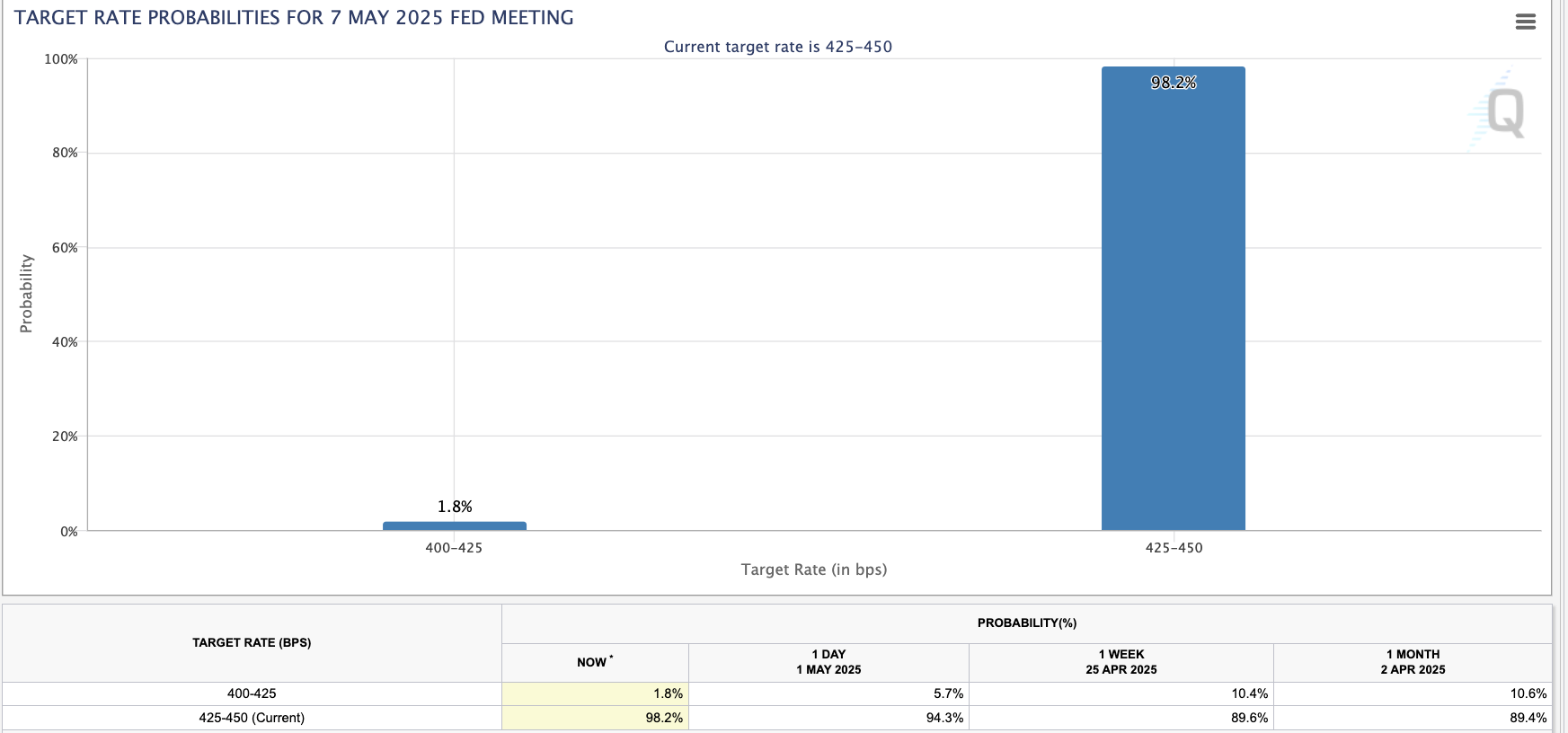 在就業報告公佈後,市場預期減少降息次數,CME 報告指出,5 月份進行調整幾乎不可能。
