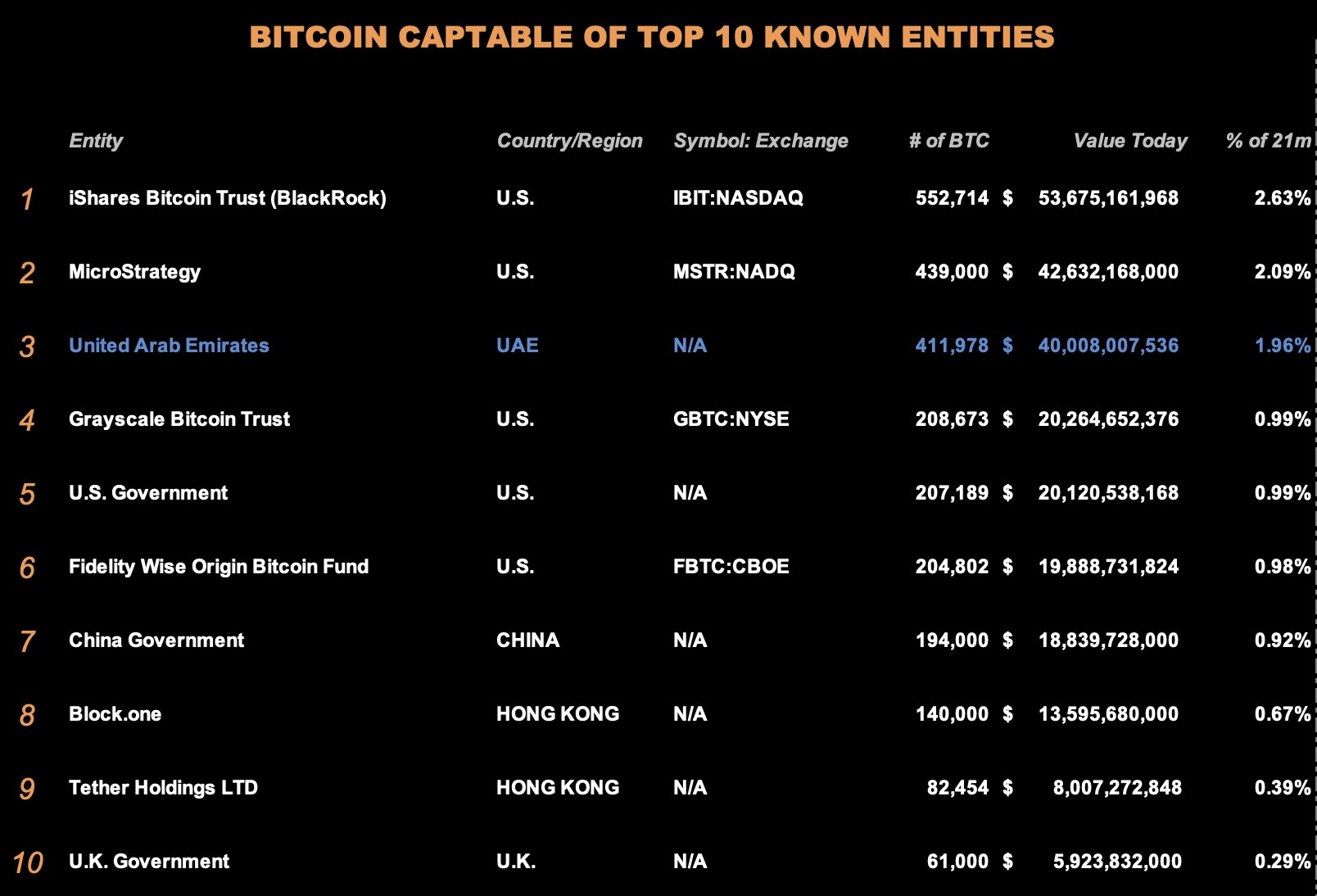 傳聞阿聯酋比特幣財富聚焦國家累積趨勢